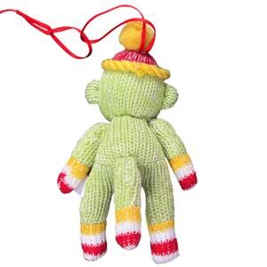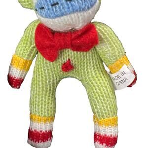 Vintage 90's 1997 Christmas Ornament Sock Monkey Collectible 4" Green Red Blue Y