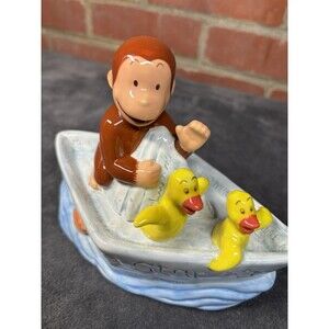 Vintage 90s 1997 Curious George Ceramic Windup Musical Figurine Music Box