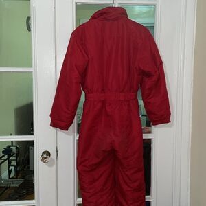 ⭐️ Solid red One piece quilted interior full zip snap up ski suit by couloir.