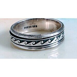 This vintage 90's spinner ring features a unique wave design crafted in 925 silver from Mexico. Perfect for collectors and those who love nostalgic fashion. Weighing 10g, it offers both style and function as a fidget accessory. This ring is a size approx a size 14.5. It is in good wearable vintage condition.