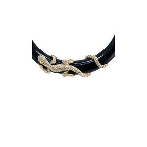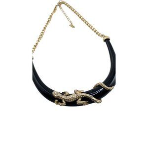 Vintage 90s ABS Rhinestone Lizard Collar Necklace Black Enamel Statement Piece (A829)