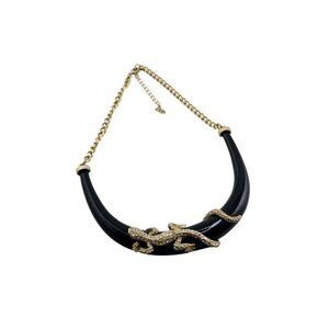 Vintage 90s ABS Rhinestone Lizard Collar Necklace Black Enamel Statement Piece