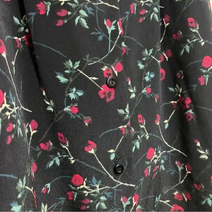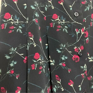 Goth and classic vintage aesthetics, this is for you!! The deep black background with delicate, dark red roses with vines offers a moody, romantic look that pairs well with both edgy and timeless styles. Its A-line silhouette and mid-length cut create a flattering shape, making it versatile for everything from a grunge-inspired outfit with chunky boots to a softer, retro look with a fitted blouse.