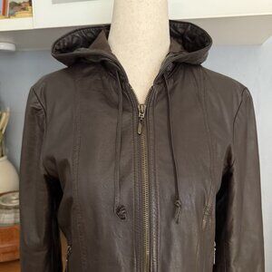 Vintage 90’s AVIREX Tactical Systems Brown Leather Hooded Jacket Womens Sz M