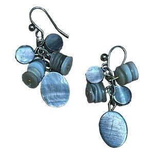 Vintage 90s Abalone Shell Beaded Earrings Off White Black Silver Tone Metal