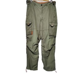 Vintage 90s Abercrombie green paratrooper wide leg baggy cargo pants. Made in Korea.