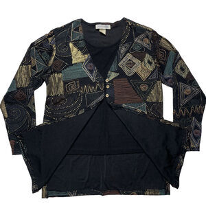 Vintage 90's Abstract Blouse Metallic Paint Impressions of California Size Small