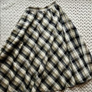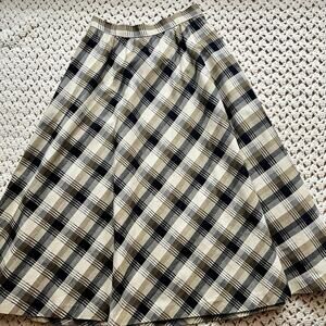 Vintage 90s Academia Black & Cream Plaid Pleated A-line Circle Skirt Size XS