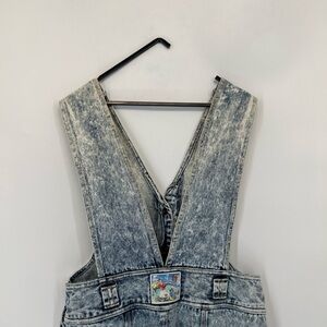 Vintage 90’s Acid Wash Front Pocket Cartoon Patch Seamed Straight Leg Jumpsuit
