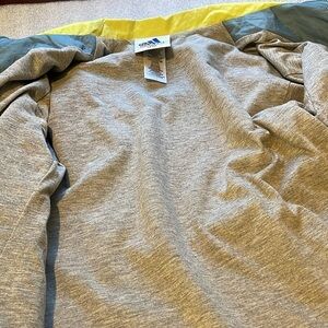 light blue zip up with light green collar and logo