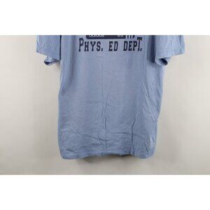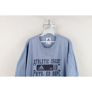 Vintage 90s Adidas Mens Large Distressed Spell Out Phys Ed T-Shirt Blue USA