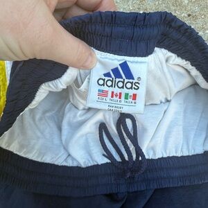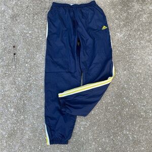 Vintage 90s Adidas Mens Large Spell Out Striped Lined Dazzle Joggers Pants Blue