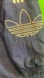 Classic navy blue windbreaker with full front zip and drawstring hood. Features the iconic 3-stripes running down both sleeves in white and the Trefoil logo on the chest. Oversized white Trefoil design printed on the left sleeve for a bold streetwear look. Lightweight with elastic cuffs and side zipper pockets. Inside hood lining is off-white for