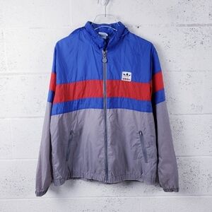 Vintage 90s Adidas Track Jacket Nylon Pants Size Medium Gray Blue Red