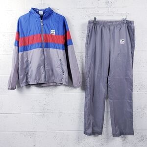 Vintage 90s Adidas Track Jacket Nylon Pants Warm Ups Size Medium Gray Blue Red