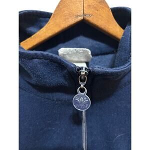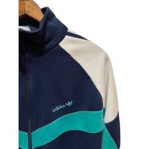 Vintage 90s Adidas White Navy Teal Blue Full Zip Track Jacket Warm Up Faded Size tag but measures a men 's Large. In Excellent vintage condition with no noticeable signs of wear. See pics for measurements and condition confirmation. Super nice vintage athletic wear!