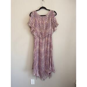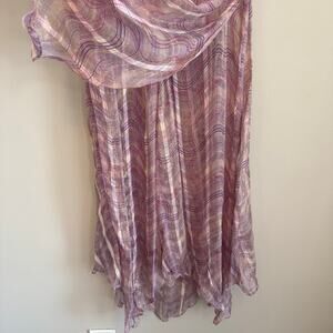 Vintage 90s Adrianna Maxi Dress Womens 8 Purple Midi Silk Metallic Flutter Sheer
