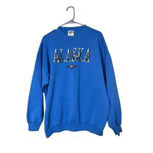 Vintage 90s Alaska Tultex Crewneck blue Sweatshirt Size XL