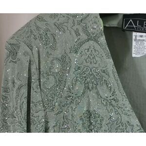 Vintage 90s Alex Evenings Light Green Glitter Jacket Top Size 12 Made USA