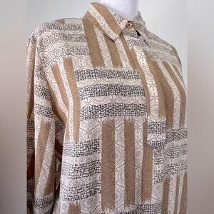 Vintage ‘90s Alfred Dunner Cream, Brown & Black Collared Long Sleeve Blouse