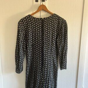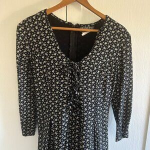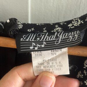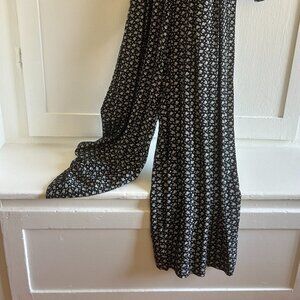 Super cute vintage 90s jumpsuit by "All That Jazz" in a fun black and white floral print. Features lace-up bodice at front, back zipper, 3/4 flowy sleeves, and cropped wide legs. Gives off major "My So Called Life" vibes. Label says size 5/6 but fits like a small.
