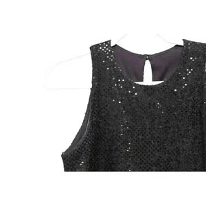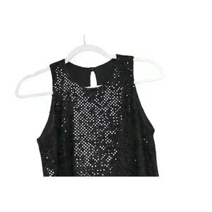 Get ready to dazzle in this vintage 90s All That Jazz dress! The black sequin and glittery accents make this mini dress perfect for any cocktail party or clubwear occasion. The dress is made of a lightweight and breathable polyester and nylon material, making it perfect for summer, fall, and spring seasons. The sleeveless and round neck design, with a button closure, adds to the elegant look of the dress. The dress is lined and has a short length, making it suitable for any vintage or retro themed party. This dress is perfect for women who want to add a touch of Y2K, rock, or grunge to their wardrobe. Get your hands on this dress today and make a statement!