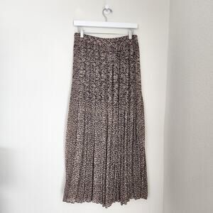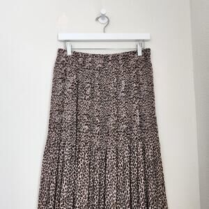 Vintage 90s Allison Taylor Brown Animal Print Pleated Midi Skirt L