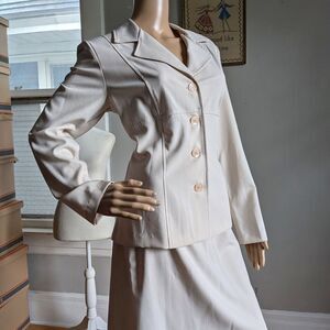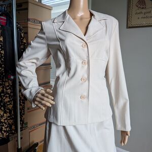 Vintage 90s Alyn Paige Skirt Suit Set Blazer Cream Ally McBeal Office Corpcore