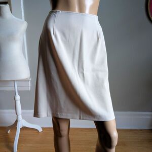 Vintage 1990s Alyn Paige skirt suit set. Cream. Comes with mini skirt and blazer. Skirt zips up back, blazer has button closure. Suit is in good condition with light fuzz at shoulders. Please see photo, this is difficult to see.