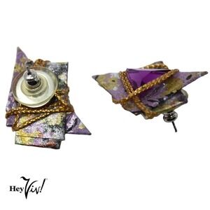 Vintage 1990s Alyssa Levitan Purple Gold Handcrafted Origami Pierced Earrings
