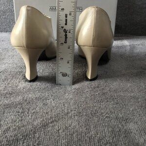 Vintage 90s Amanda Smith Kid Skin Leather Heels Sz 7M Taupe Lace Cage Front EUC