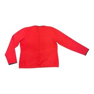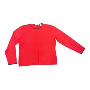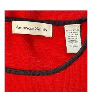 Add a classic vintage touch to your wardrobe with this 1990s Amanda Smith long-sleeve sweater. Crafted from a tight-knit acrylic-nylon blend, this pullover sweater features a bold red color with black trim, offering a timeless, effortlessly chic look.