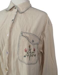 Vintage 90s Andrew's Blues cream button down shirt top with floral embroidery on pocket