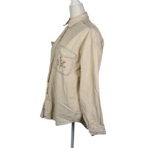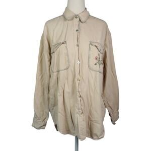 Vintage 90s Andrew's Blues Cream Button Down Shirt Floral Embroidery M