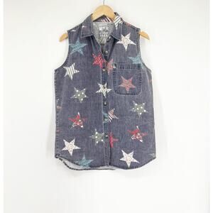 Vintage 90s Andrew's Blues Star Retro Chambray Button Up Tank Large