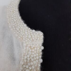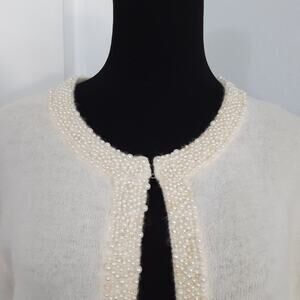 Vintage 90s Angora Cardigan Sweater Tank Set Cream Pearl Collar Wool L Holiday