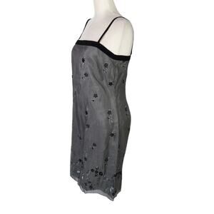 Vintage 90s Ann Taylor Grey Silk Floral Embroidered Mini Cocktail Dress 4