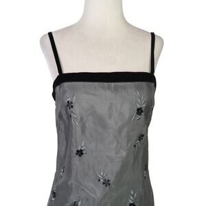 Vintage 90s Ann Taylor grey silk floral embroidered mini cocktail party dress