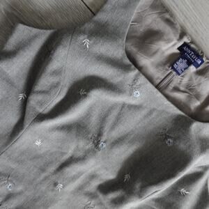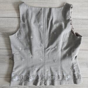 Vintage 90s Ann Taylor Grey Square Neck Floral Embroidered Sleeveless Blouse