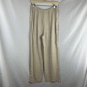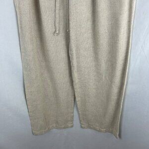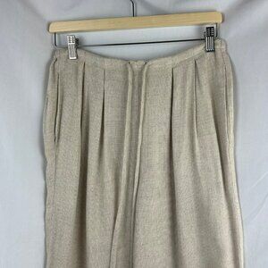 Vintage 90s Ann Taylor Linen Blend Pants Women Small Tan Beige Pleated Wide Leg