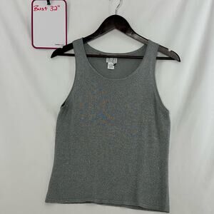 Vintage 90s Ann Taylor Loft Silver Lurex Tank Top Medium Retroglam Holiday Scifi