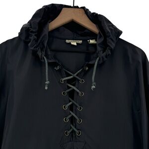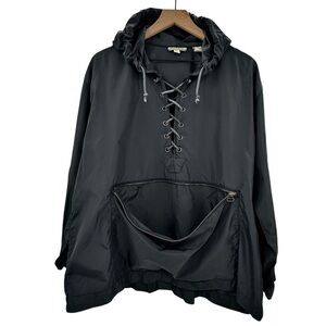 Vintage 90s Ann Taylor Windbreaker Jacket Black Nylon Hooded Pullover | Small