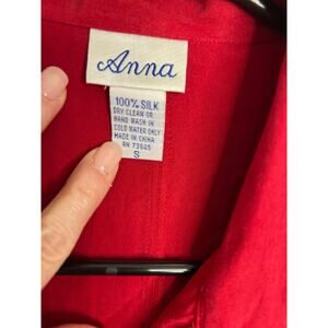 Vintage 90s Anna Red Silk Long Sleeve Button Down Blouse Top Small