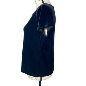 Vintage 90s Anne Klein Boxy Black Velvet Top Size Large. This chic top features a comfortable boatneck and stylish cap sleeves, perfect for adding a touch of elegance to any outfit.