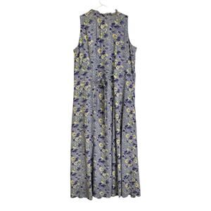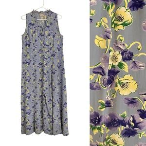Vintage 90s April Cornell Button Front Maxi Dress Size Medium Purple Floral