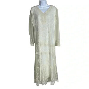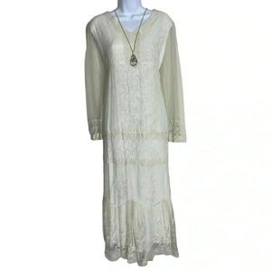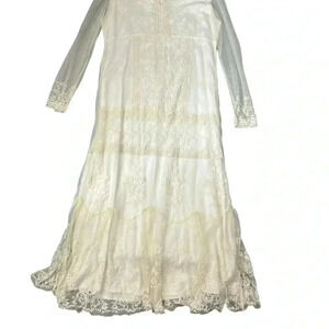 Vintage 90s April Cornell Lace Midi Dress Size Small In Ivory Cream NWT