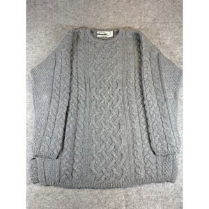 Vintage 90s Aran Crafts Sweater Mens Medium Gray Cable Knit Wool Blend Ireland