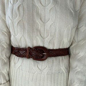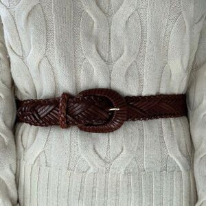 Vintage 90s Architect Womens Brown Leather Hippie Braided Waist Belt Sz M