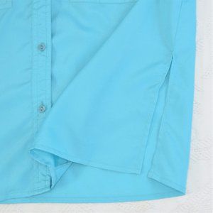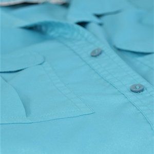 Vintage 90’s Ariella Aqua Blue Lightweight Button Up Short Sleeve Shoulder Pad B