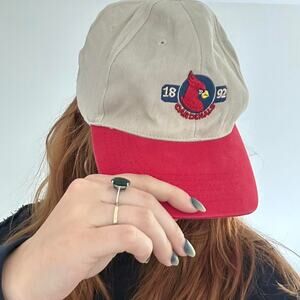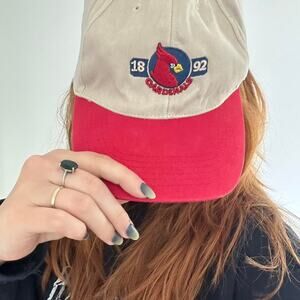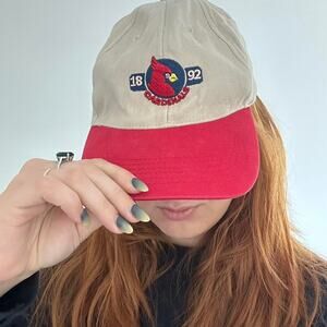 Red and cream vintage 90s Cardinals adjustable baseball cap with a “Southwest Airlines” sponsored embroidery in the back.
